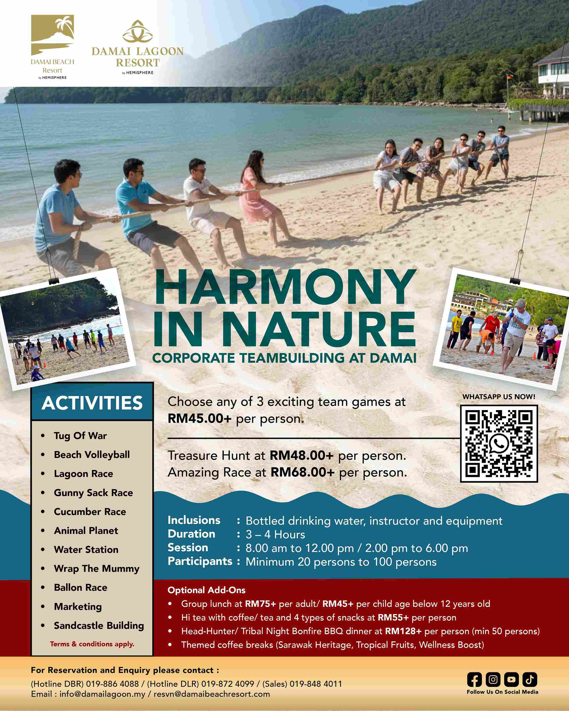 Bring your team out of the office and into the beauty of nature, where teamwork meets tranquillity at Damai. Nestled between the majestic Mount Santubong and the South China Sea, our “Harmony in Nature” retreat offers the perfect backdrop of sea, mountain, and rainforest for collaboration, communication, and creativity. Here, your team can reconnect, recharge, and rediscover the power of working together through outdoor adventures, wellness activities, and collaborative challenges designed to strengthen bonds and inspire success.